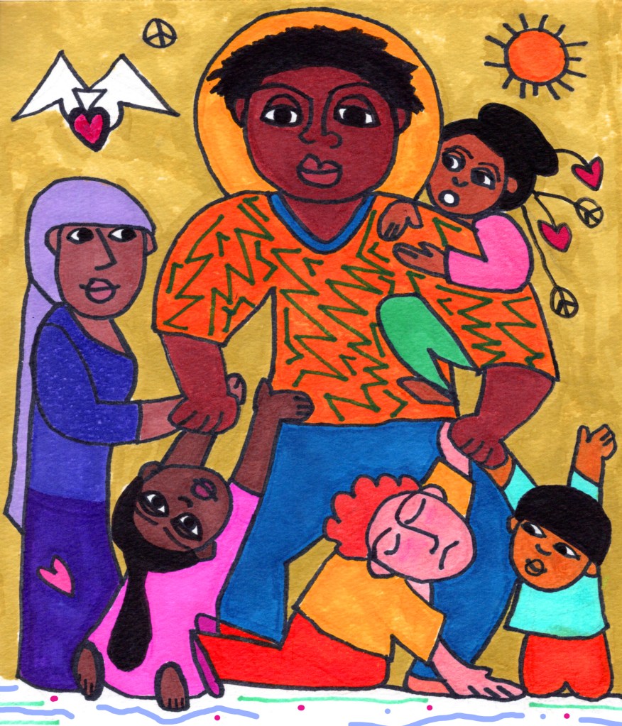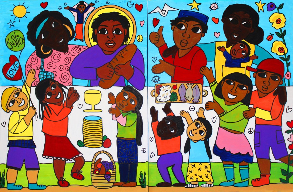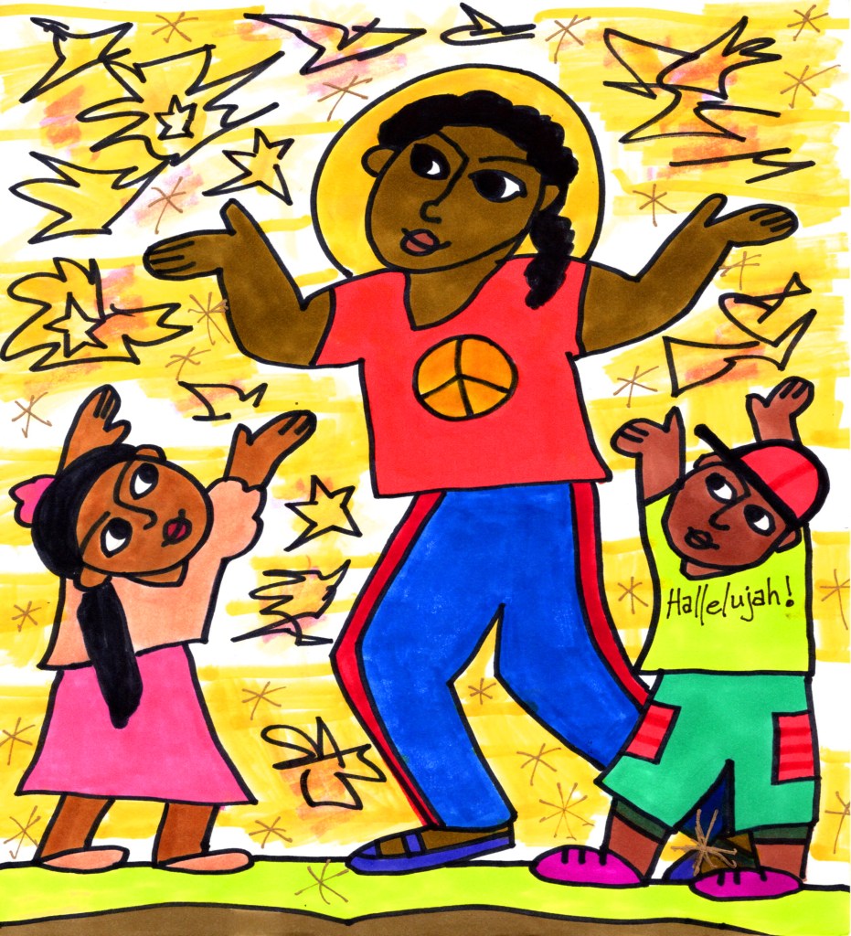 In this diptych, I try to celebrate the miracle of Jesus and God’s constant, never-ending love for ALL of us. And by another holy miracle, they and the Holy Spirit will enable US to love each other with a consistent, ever-present love and together build a blessed community of justice, care, and peace. Hallelujah! Believe in the miracles! And let’s live into them!! ❤️ 💜