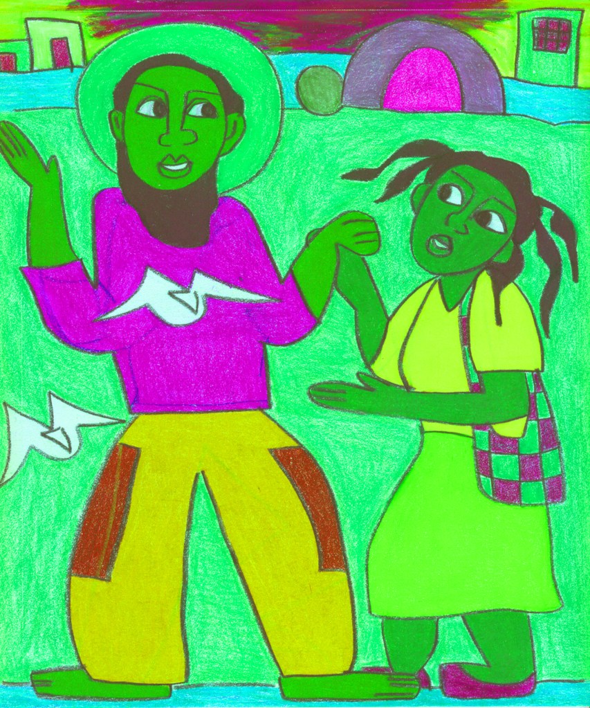 Jesus is the LIFE of the world! In this illustration, I was trying to show the Word as baby Jesus and as the grown Son of Man, and I have a woman, representing all of us, who receives light, life, inspiration, hope, joy, and a new way of life from this Word, from the Lord Jesus.