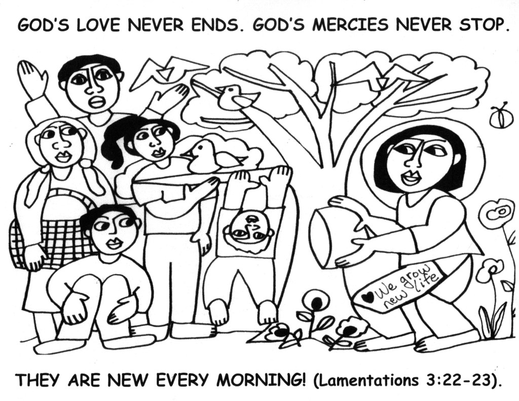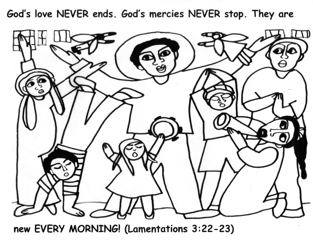 One more pair of coloring sheets for kids of any age… This topic: God’s love never ends. God’s mercies never stop. They are new every morning! (Lamentations 3:22-23) ❤️ 💜 ❤️