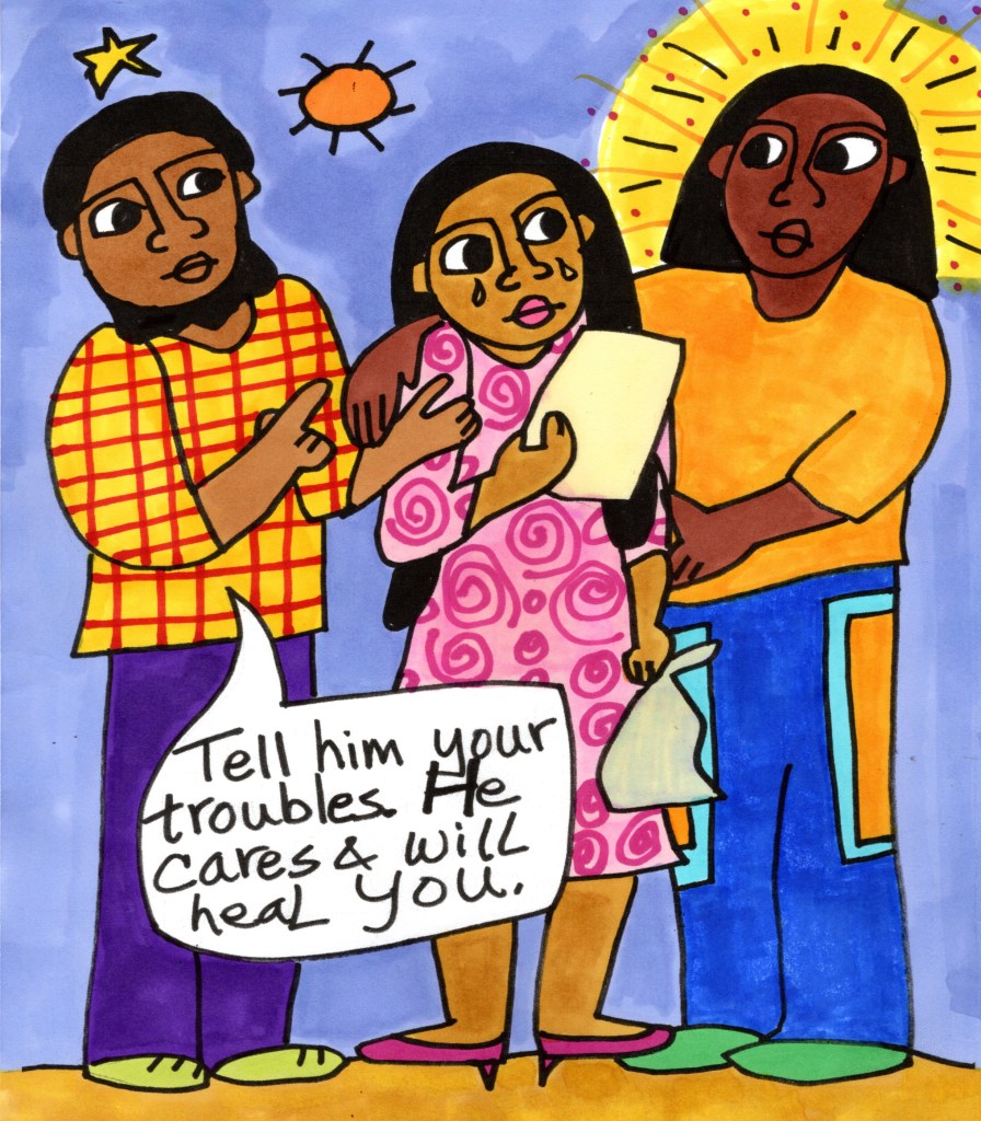 Tell Jesus your troubles. He cares and will heal you, giving you joy and a life full of love and his power. ❤️ 💜