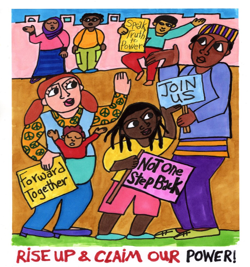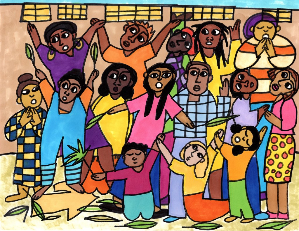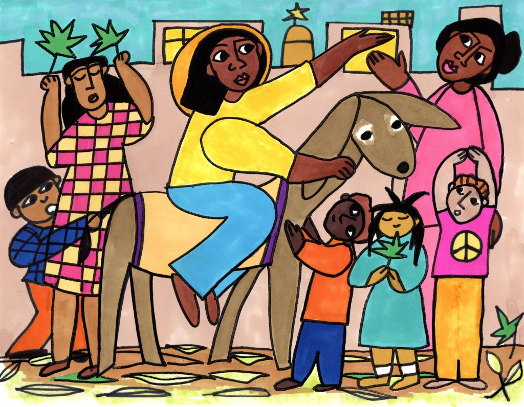 As he rode a donkey into Jerusalem, a huge crowd of people followed him, rallying, cheering, and marching behind Jesus, celebrating him as teacher, builder, leader, and healer in God’s kingdom of love and justice, on Earth as it is in heaven. Then, as today, people cried and shouted out: “Hosanna in the highest! God, save us!!” ❤️ 💜