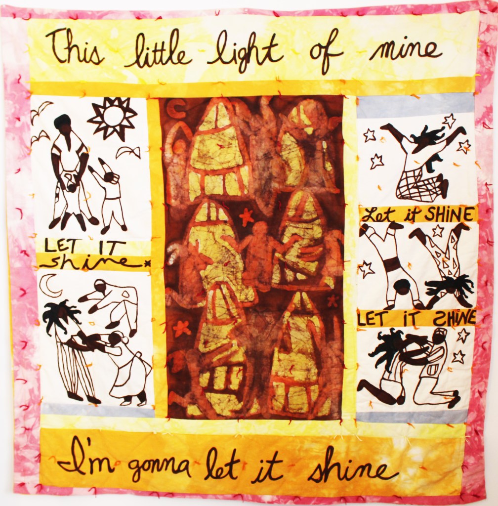 This quilt I made many years ago and still have on my bed today celebrates the song: “This little light of mine, I’m gonna let it shine…”