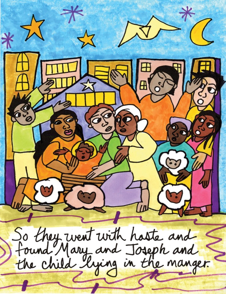 They went with haste to see the child lying in the manger. I pray we all too can hurry to see–and follow–the revolutionary, loving Jesus… from my in-process comic/graphic book of the gospel according to Luca ❤️💜